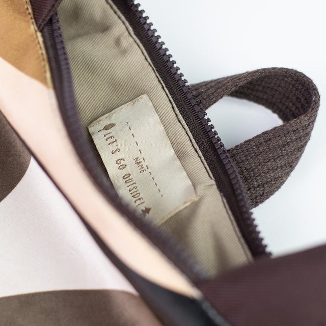 The backpack is lined with orange fabric. Shoulder straps in beige. Two adjustable shoulder straps will ensure a comfortable experience. Backpack has a zipper closure and two inside slip pockets.