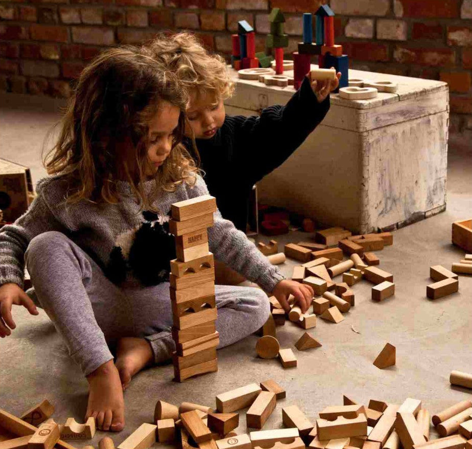 63 wooden blocks with a smooth, pleasant to the touch surface