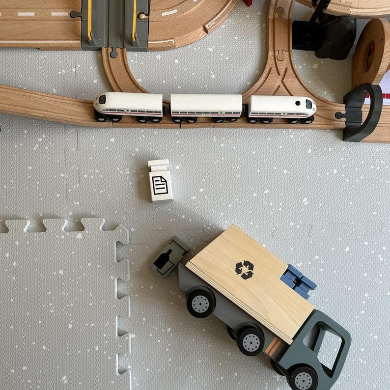 Create a safe and cozy play space for your baby with the OLYA KIDS “Spots” puzzle playmat. Made from soft, non-toxic EVA foam, its neutral, minimalist design adds warmth and style to any room and makes a perfect backdrop for baby photos.