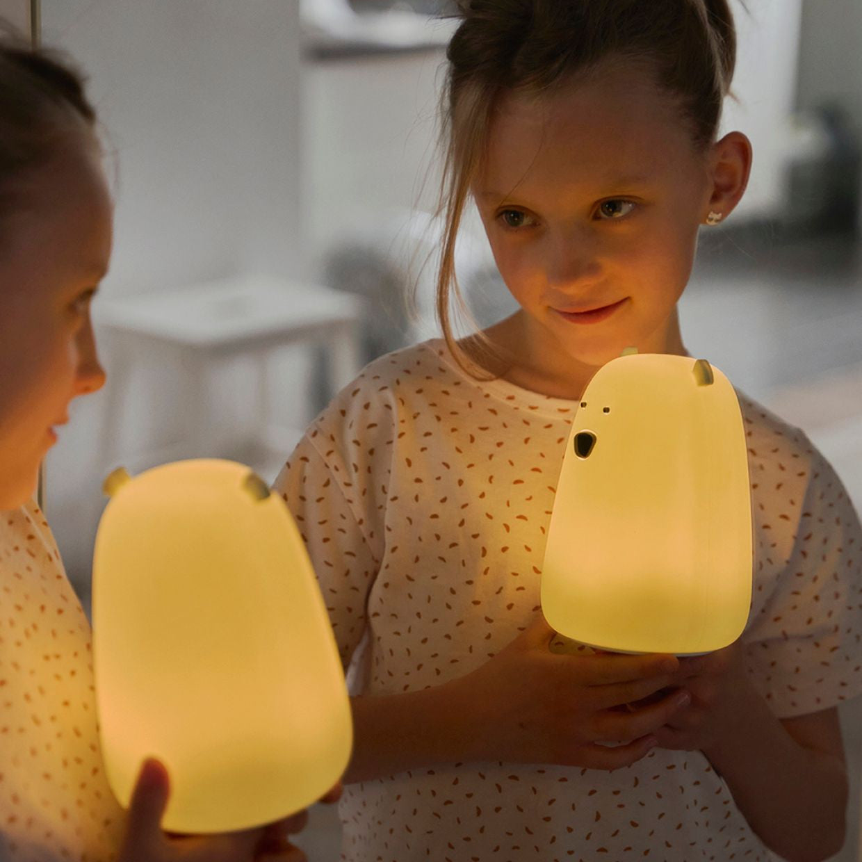 The award-winning Big Bear lamp from Rabbit & Friends is an indispensable companion for playtime and bedtime. This incredibly charming Bear provides friendly lighting that enhances a sense of security and aids in children’s development. The lamp helps establish bedtime habits, facilitates falling asleep, and ensures a peaceful, healthy sleep for the little ones. It’s soft and pleasant to touch, making it a perfect cuddle toy that a child can take to bed. It makes nighttime care and parenting easier. With our lamp, your child will feel safe and fall asleep happily.
