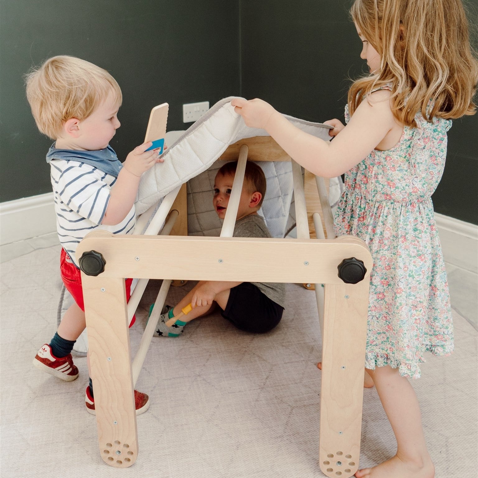 Allow your child to move freely and develop with a help of the climbing triangle, which is the right choice for giving kids complete freedom in understanding how legs and arms move, how to keep balance, how fast the reaction works. And these movements are very important not only for physical development, but also for alertness and attention. The Pikler with 3 sections can also be used as a Swedish wall.