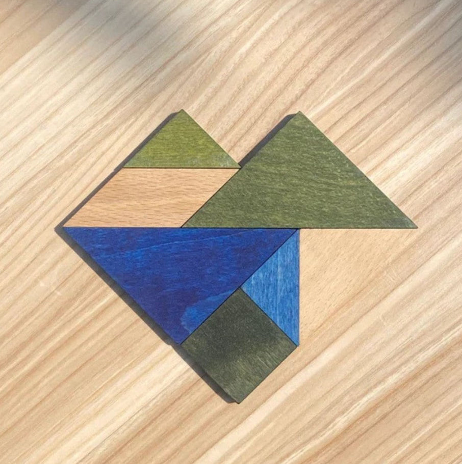 A classic tangram set made from finely sanded, FSC-certified wood and finished with natural oils. It sparks creativity, fine motor skills, and patience through open-ended play. Comes in a handy drawstring bag—perfect for travel or tidy storage.