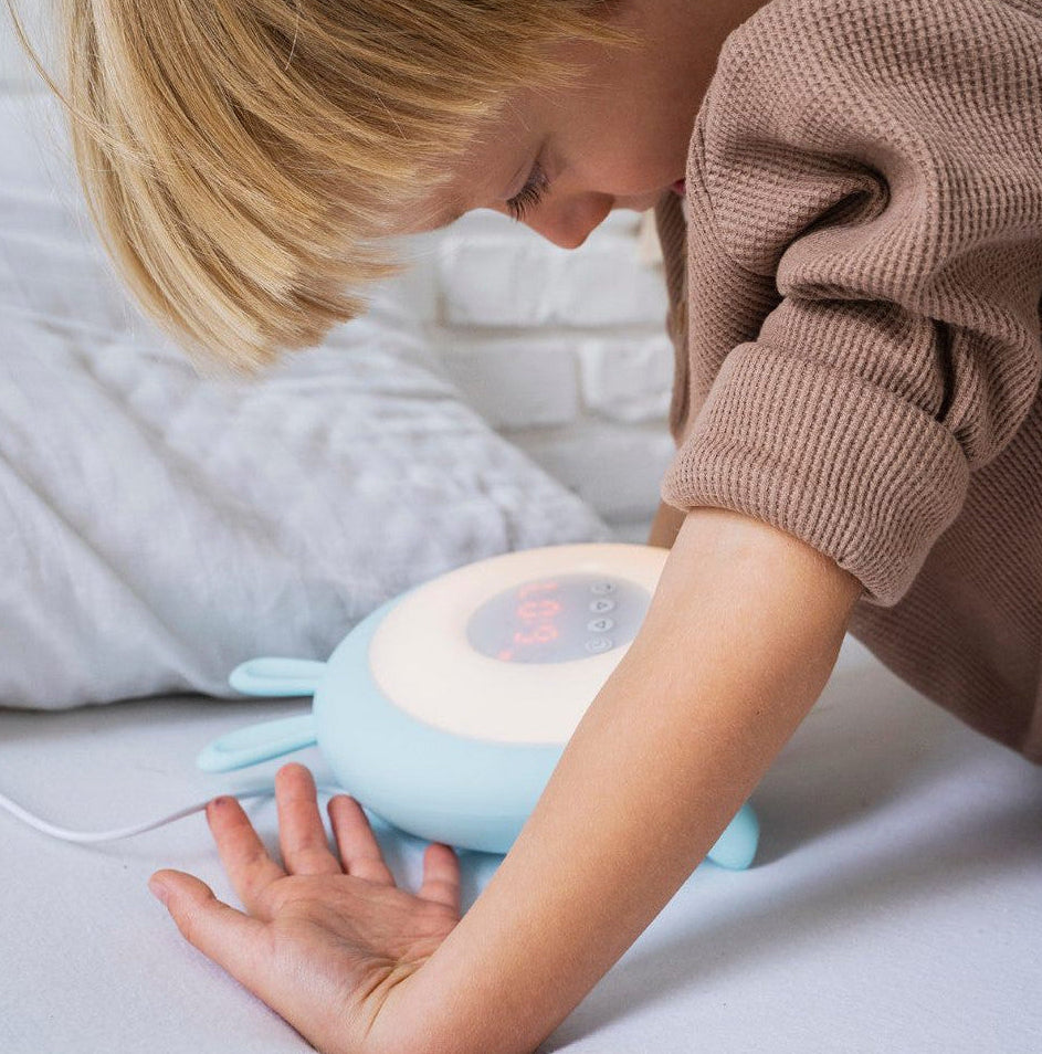 Rabbit-väckarlampan med roliga öron väcker dig försiktigt med mjukt ljus och naturljud, och i slutet av dagen dimmas den gradvis ner när det närmar sig läggdags. Den hjälper till att reglera den naturliga dygnsrytmen och har en positiv inverkan på hälsa och välbefinnande. Lampan hjälper till att utveckla hälsosamma vanor för att gå upp och somna hos både barn och vuxna. Den passar perfekt in i inredningen i både barnrummet och föräldrarnas sovrum. Lampan imiterar intensiteten i naturligt ljus vid soluppgång och solnedgång.